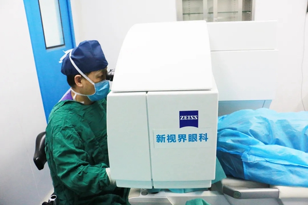 🔼 图为上海新视界中兴眼科医院廉井财院长采用蔡司全飞秒设备为患者进行近视激光矫正手术