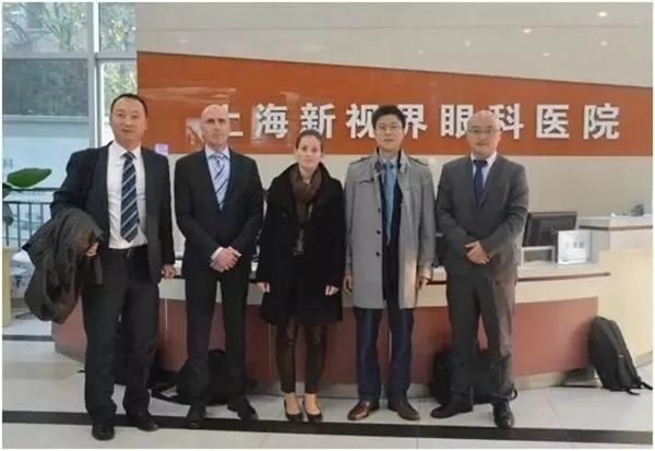 🔼 图为2014年12月1日,德国蔡司公司Burkard Wagner先生、Marie-TheresZipfel女士和蔡司上海区屈光部经理李宁先生来到新视界眼科参观交流。对全飞秒激光手术在新视界眼科的推广及应用和新视界眼科集团的发展给予高度赞扬和肯定。