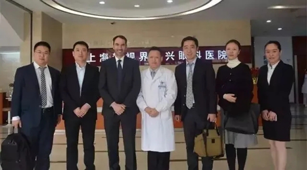 🔼 图为2017年3月9日,德国蔡司公司亚太区CEOJoe Redner先生携大东区经理王建中及三焦点市场部经理周建等来到上海新视界中兴眼科医院参观。