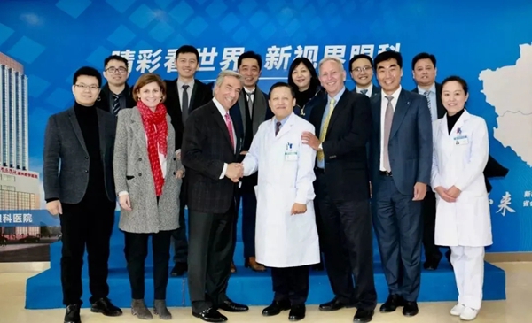 🔼 图为2019年2月12日,蔡司眼科全球总裁James Mazzo先生、蔡司眼科全球首席医疗官Steve Schallhorn先生、蔡司眼科全球首席战略官Amelie Koch女士一行莅临我院参观交流。